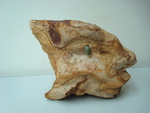2009De steen gaf met de belijning de contouren van deze alien al aan, het groene oog is een sprekend detail uitgevoerd in regenboogsteen.