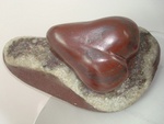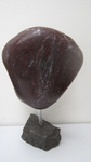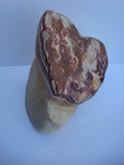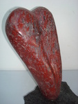 2010Een hart in bordeaux rood marmer op eiken sokkel.