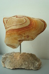 2009Beeld van man en vrouw in regenboogsteen, samen verbonden door de kleurentekening van en de vorm van de steen.